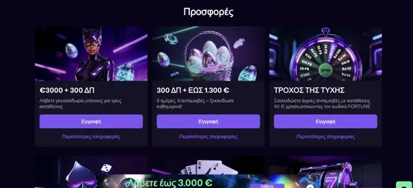 | Fierce Friday (EUR) | Παρασκευή | 20/60/100 Free Spins ανά επίπεδο κατάθεσης | Κατάθεση €20/€50/€100 και χρήση κωδικού FIERCE5 |